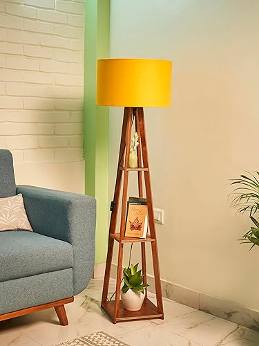 2.Crosscut Furniture Metal Floor Lamp with 3 Shelves (Fresh Yellow) LED Bulb Included