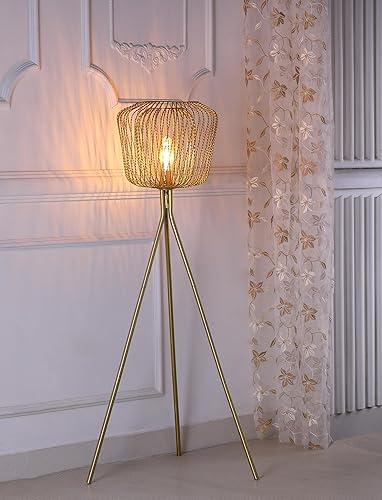 5.Rust & Shine Guzel Metal Floor Lamp - Gold Finish Wire Mesh Design | with Durable & Steady Iron Construction | Warm Lighting Night Floor Lamp for Home, Bedroom & Living Room Décor