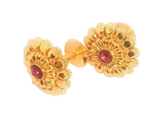 Traditional Gold-Tone Stud Earrings with Red Stone | Round Ear Studs for