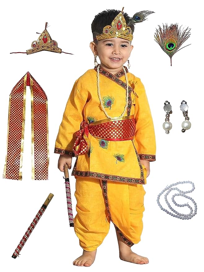 Kaku Fancy Dresses Cotton Krishna Costume For Kids|Kids Krishna Dress Fancy Dress Costume For Boys/Girls - Yellow (5-6 Years) Price ₹559