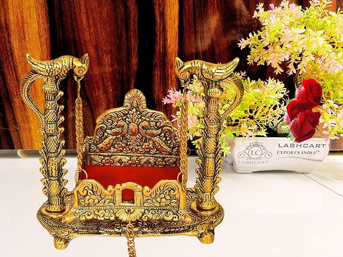 LABHCART Metal Laddu Gopal Jhula Krishna Hindola Palana Decorative Laddu Gopal for Temple Pooja,Showpiece